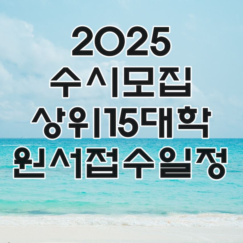 2025학년도 수시모집 원서접수가 9월9일부터 13일까지 5일간 진행될 예정입니다. 각 대학마다 접수 날짜가 다르니 상위 15개 대학 수시모집 원서접수와 마감 일정 알려드립니다.